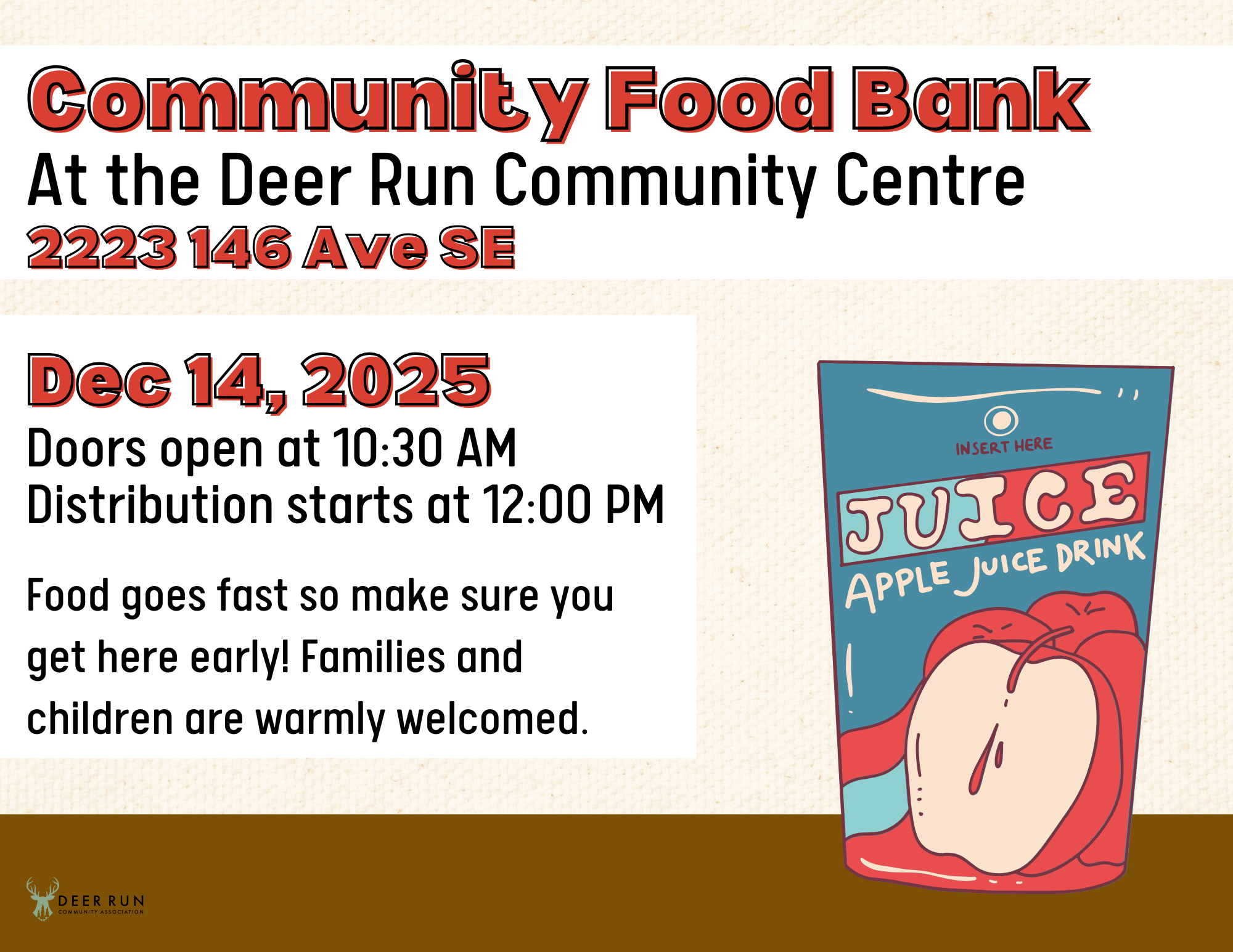 Each Sunday, the DRCA will be hosting a Community Food Bank event. The Community Food Bank will be hosting a Free Grocery Distribution for anyone in need. Everyone is welcome to enjoy light refreshments, and take the opportunity to socialize with your neighbours. Families and children are warmly welcomed! Boxes will be provided to help you carry your groceries.